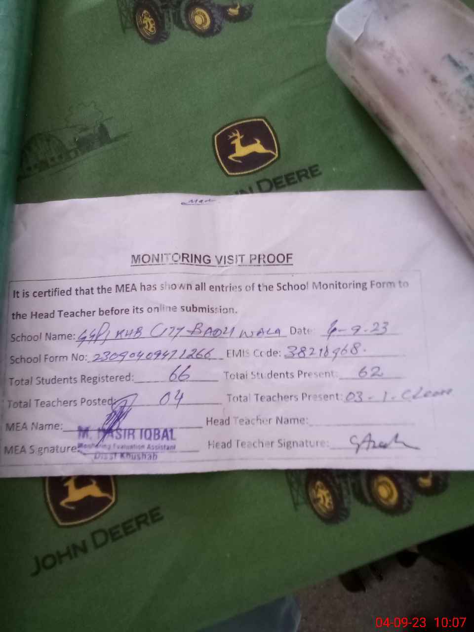 | EMIS Code: 38210968 | Name of School: GGPS KHUSHAB CITY BADLI WALA | |||