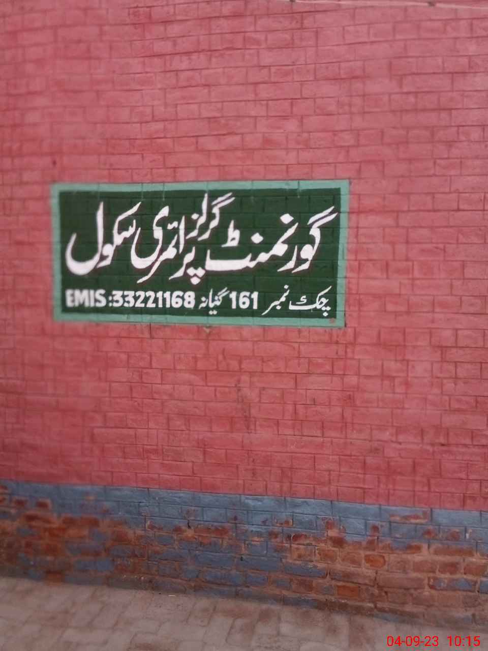 | EMIS Code: 33221168 | Name of School: GGPS CHAK NO 161 JB GUNIANA | |||