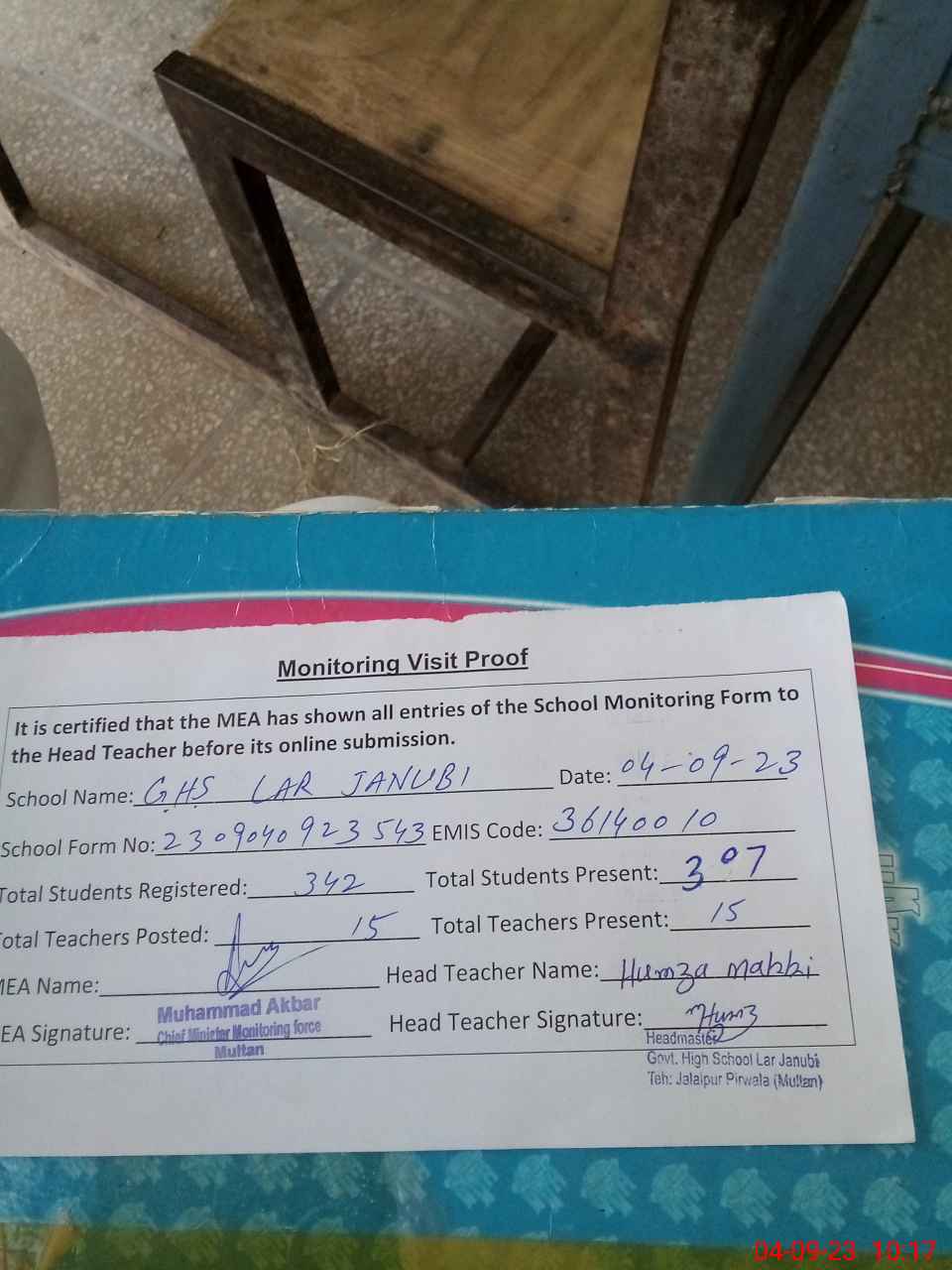 | EMIS Code: 36140010 | Name of School: GHS BASTI LAR JANUBI | |||