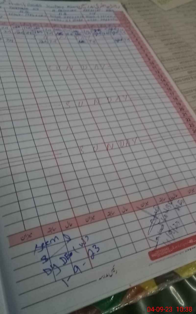| CNIC | Full Name | Designation | R/C | Absence During Last Calender Month |