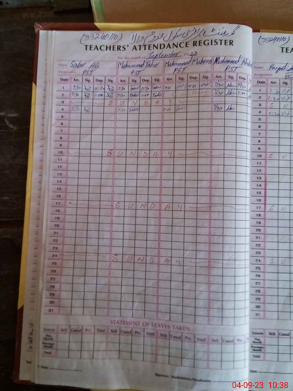 | Name: Sa**** Al**** Designation: (School Headmaster's/Headmistress's) PST Phone/Cell Number: 03**** |