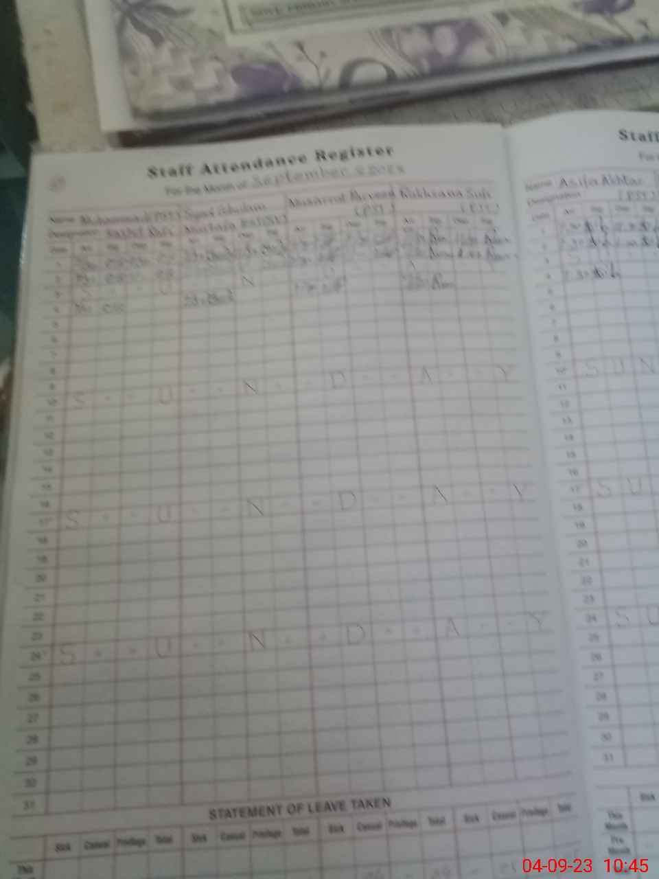| Leave | Duty | Absent | Maternity | Medical | Ex- Pak |
