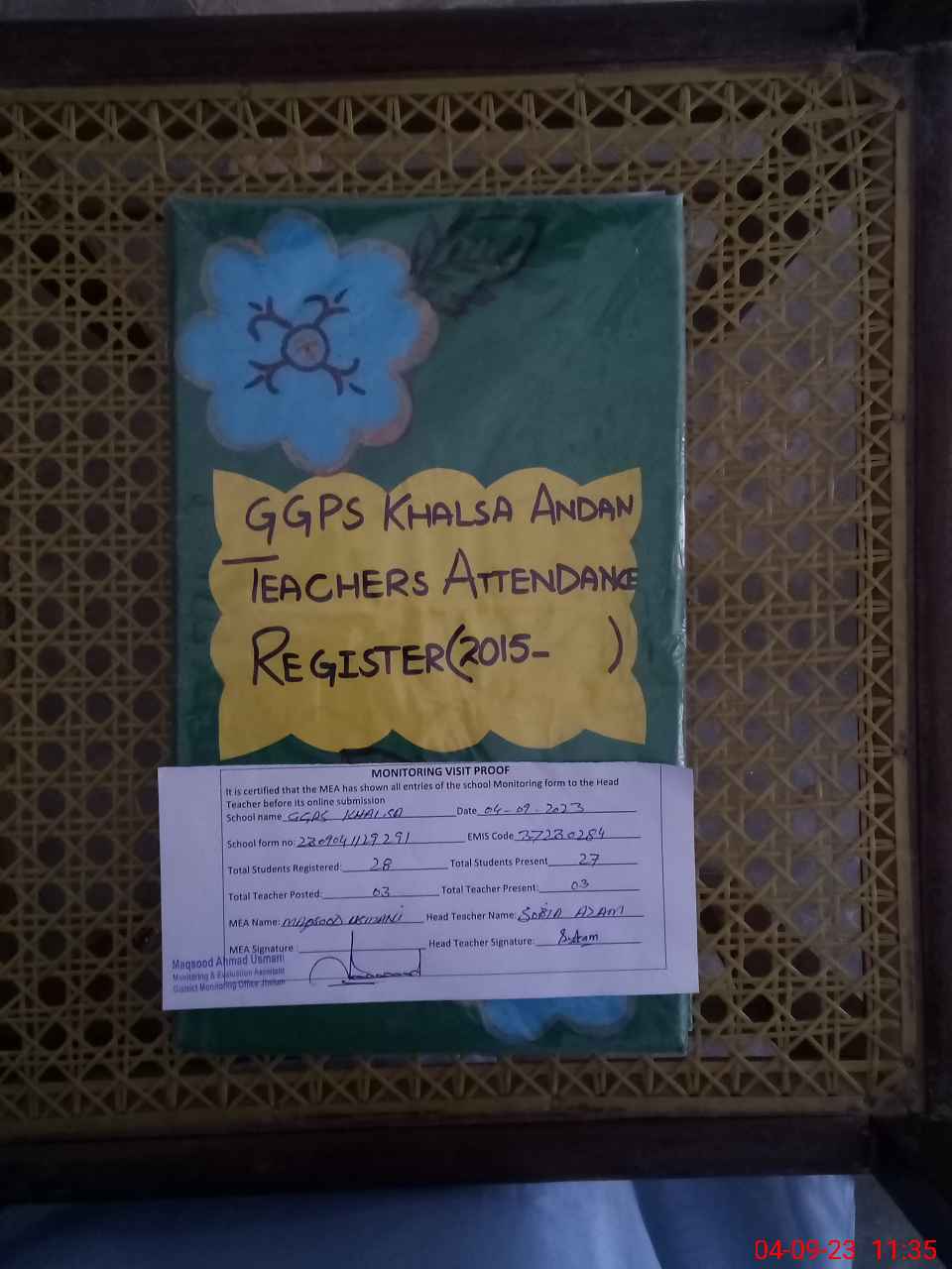 | EMIS Code: 37230284 | Name of School: GGPS KHALSA | |||