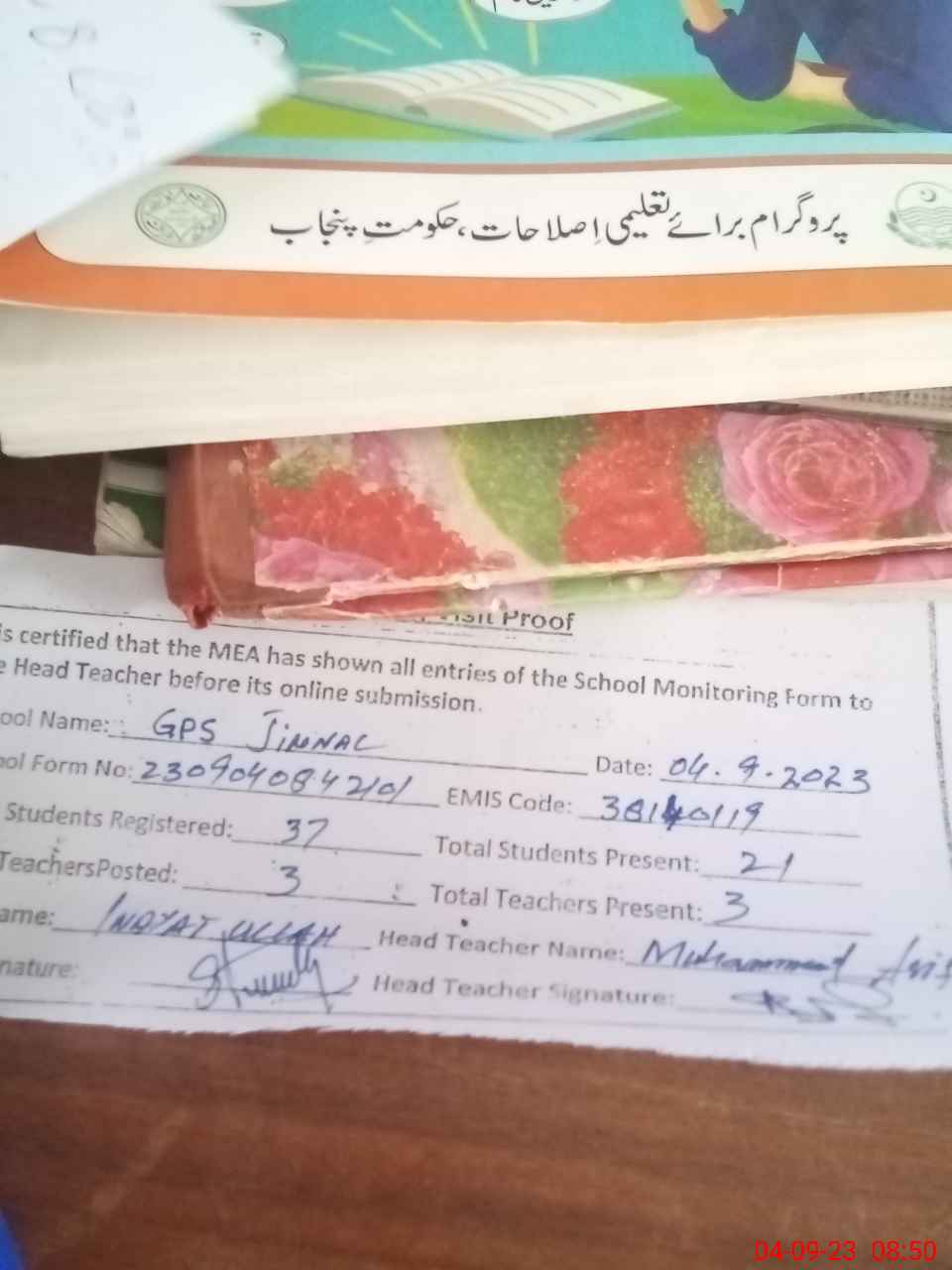 | EMIS Code: 38140119 | Name of School: GPS JINNAL | |||