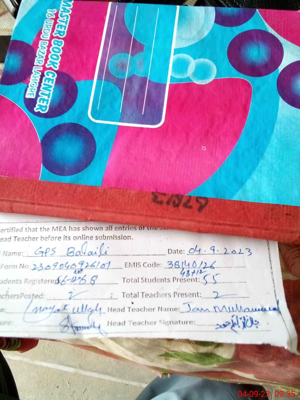| EMIS Code: 38140126 | Name of School: GPS BALELI | |||