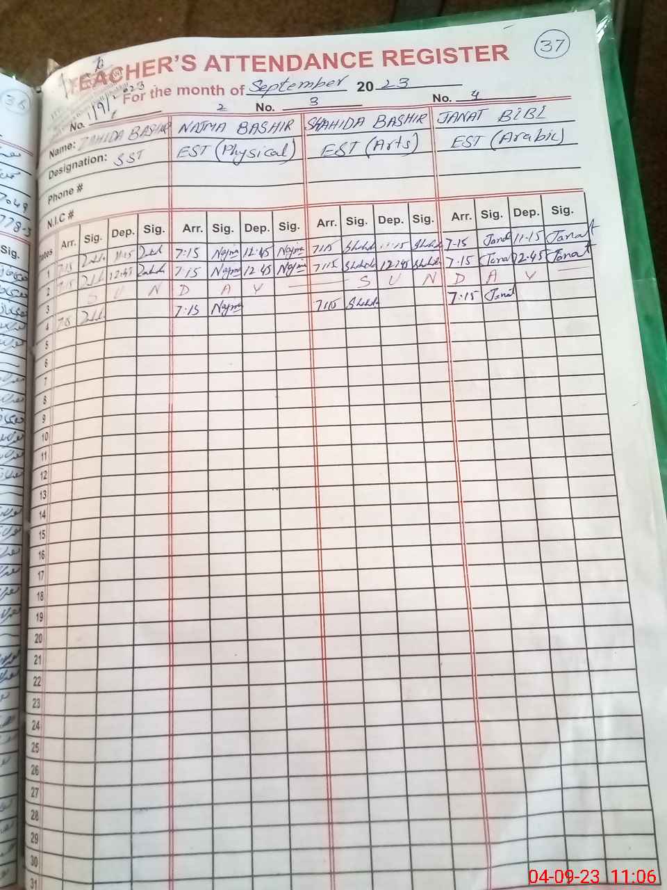 | Name: ZA**** BA**** Designation: (School Headmaster's/Headmistress's) S.S.T.(Arts) Phone/Cell Number: 03**** |