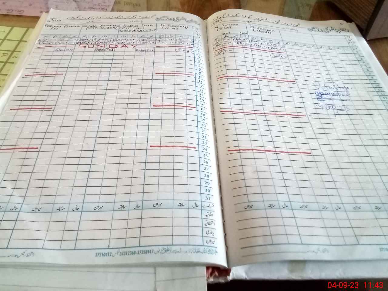 | CNIC | Full Name | Designation | R/C | Absence During Last Calender Month |