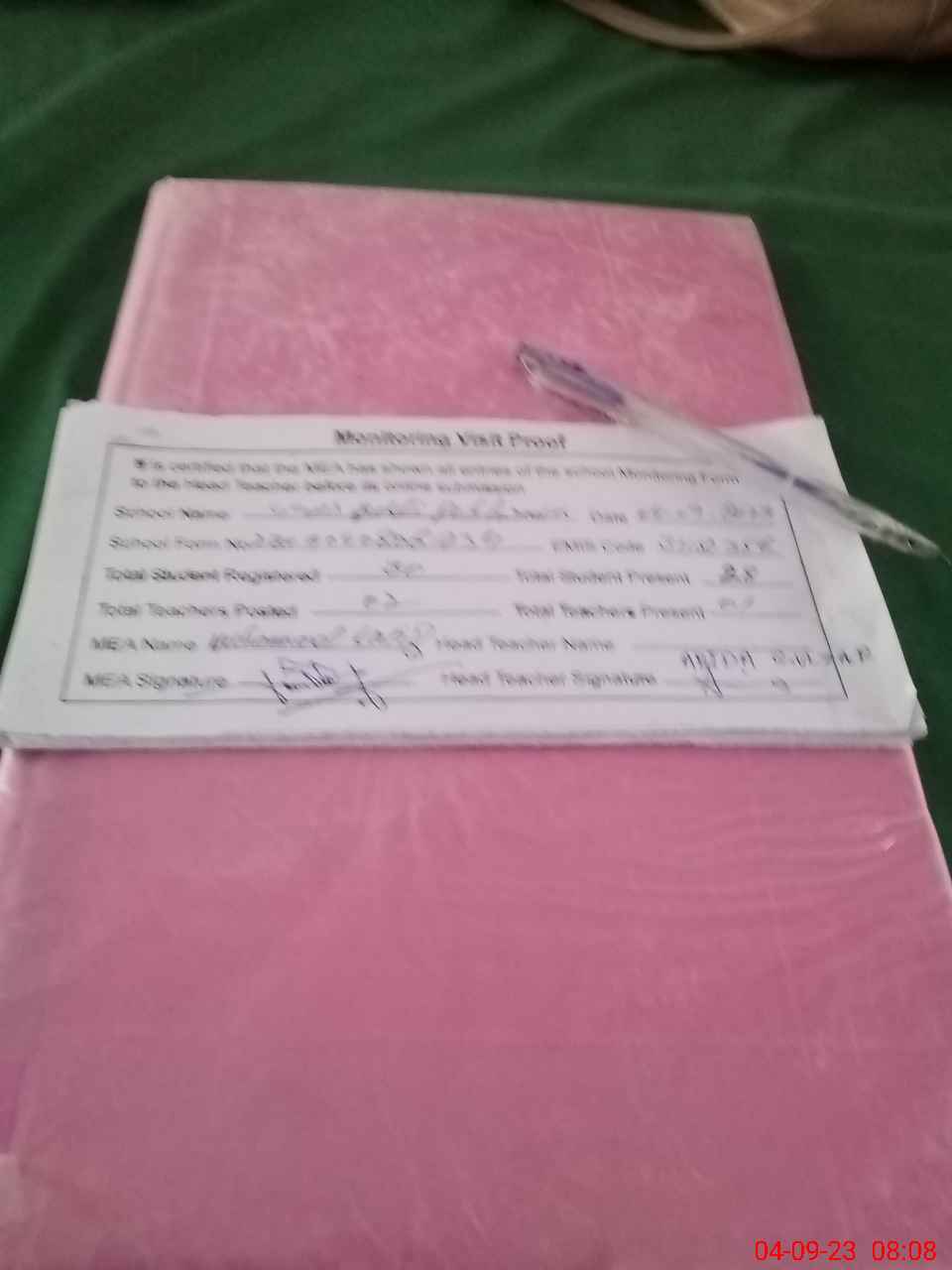 | Attendance Register | Head Teacher | MEA with School | Visit Proof |