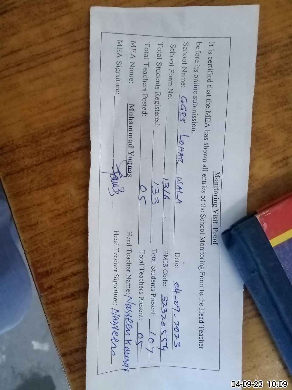 | EMIS Code: 32320554 | Name of School: GGPS LOHAR WALA | |||