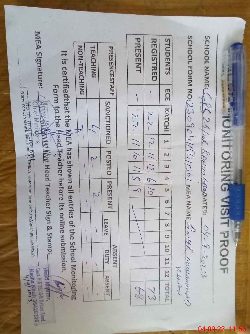 | EMIS Code: 36420235 | Name of School: GPS 26/10-R RAHIM ABAD, KACHA KHUH | |||
