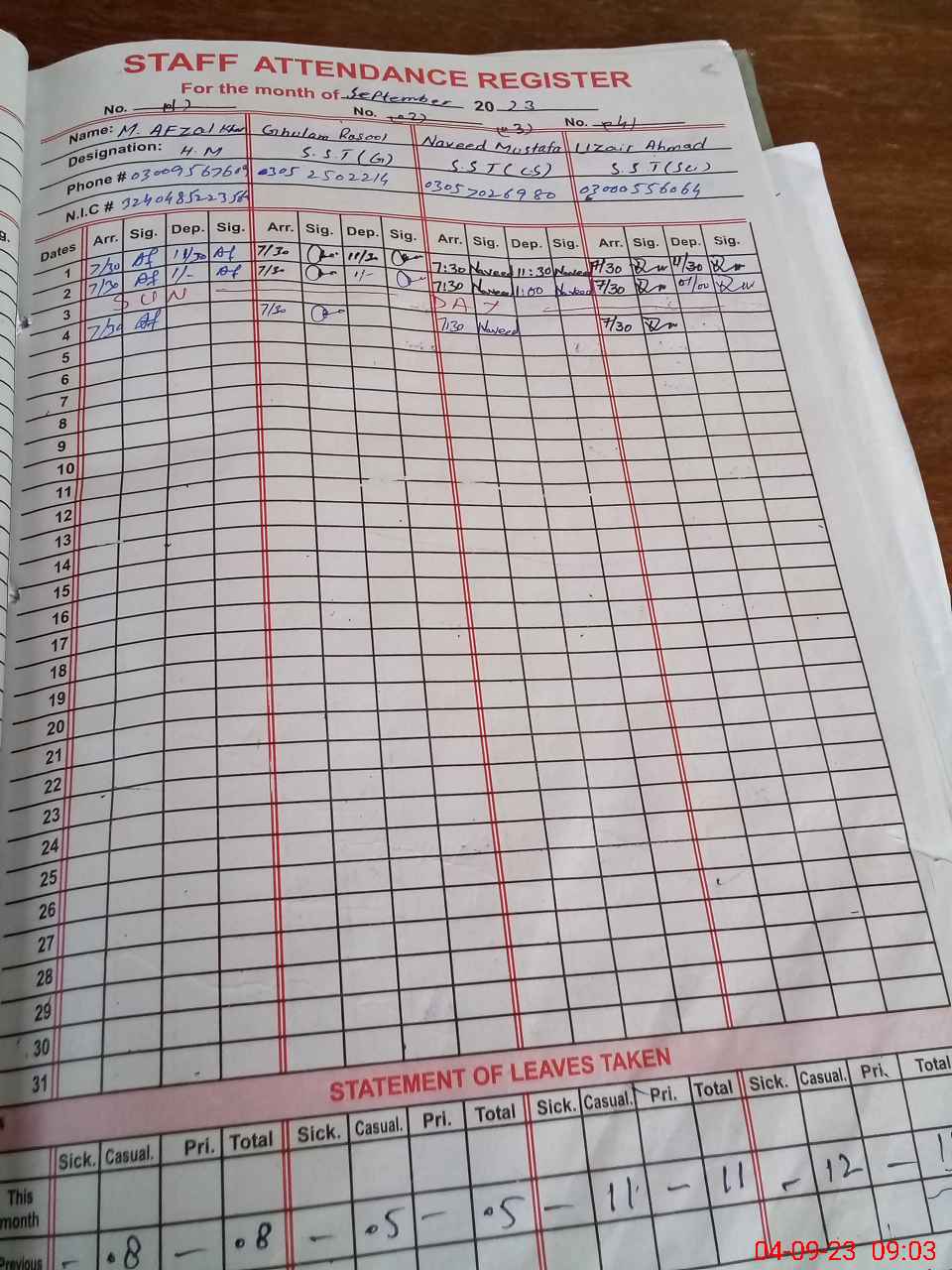 | Name: MAF**** Designation: (School Headmaster's/Headmistress's) Head Master Phone/Cell Number: 03**** |