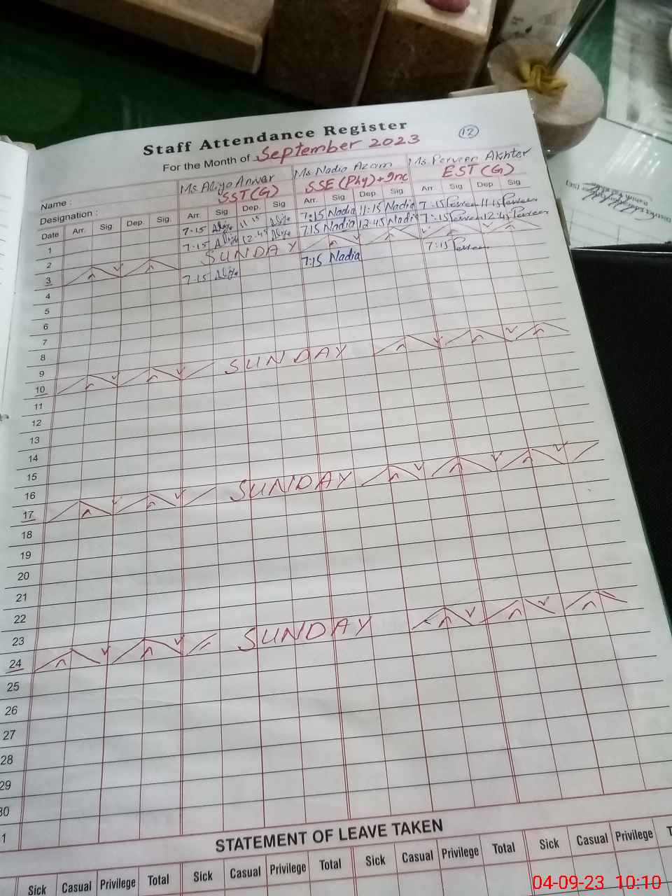 | 31**** | Mu**** Gh**** Na**** | Contract | 5 | 0 | 0 | 0 | 0 | 0 | 0 | 0 | 5 | Absent (Un-Authorized) | |