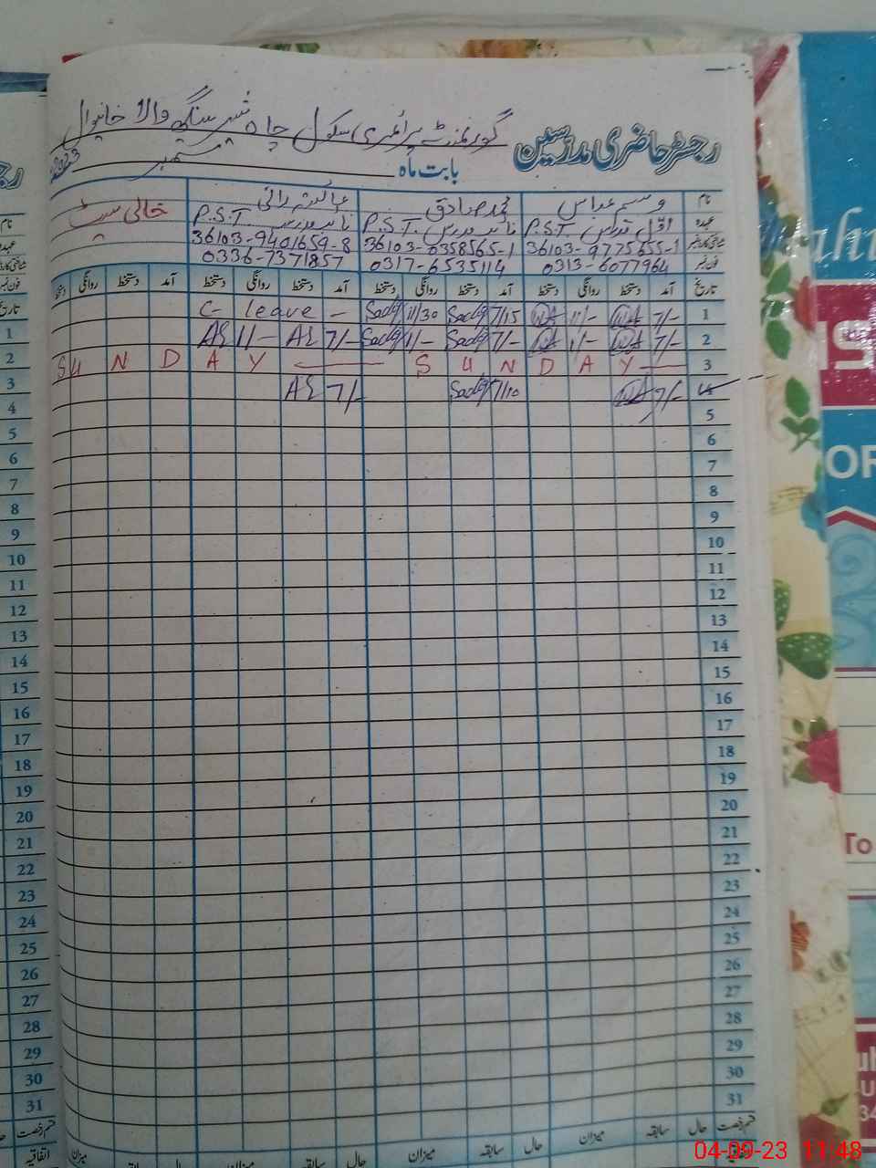 | Name: Wa**** Ab**** Designation: (School Headmaster's/Headmistress's) PST Phone/Cell Number: 03**** |