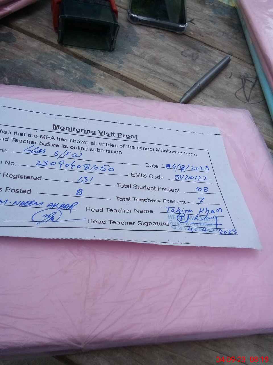 | EMIS Code: 31120122 | Name of School: GGES CHAK NO. 5 FORDWAH | |||