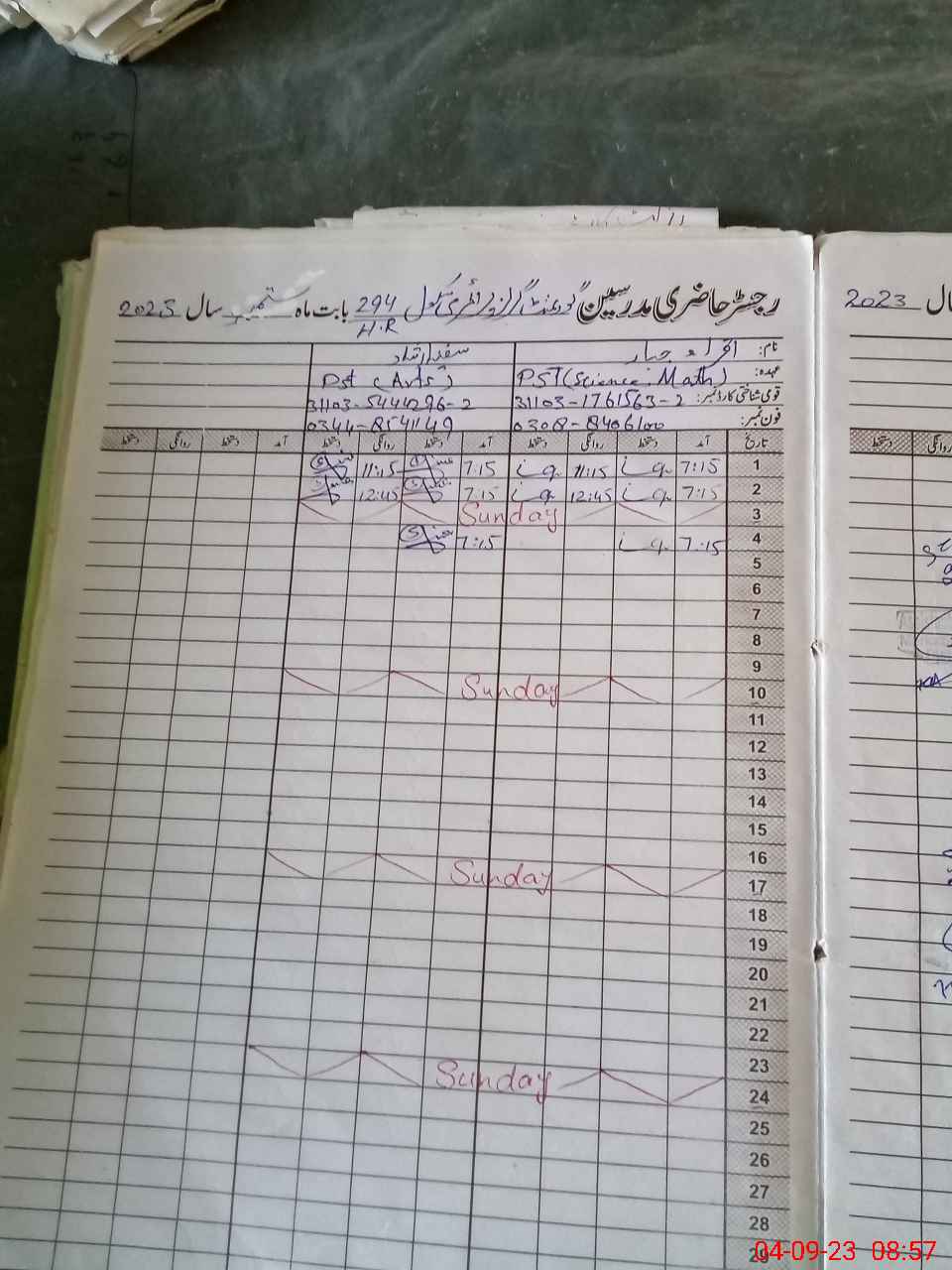 | Name: IQ**** JA**** Designation: (School Headmaster's/Headmistress's) ESE (SC MATH ) Phone/Cell Number: 03**** |
