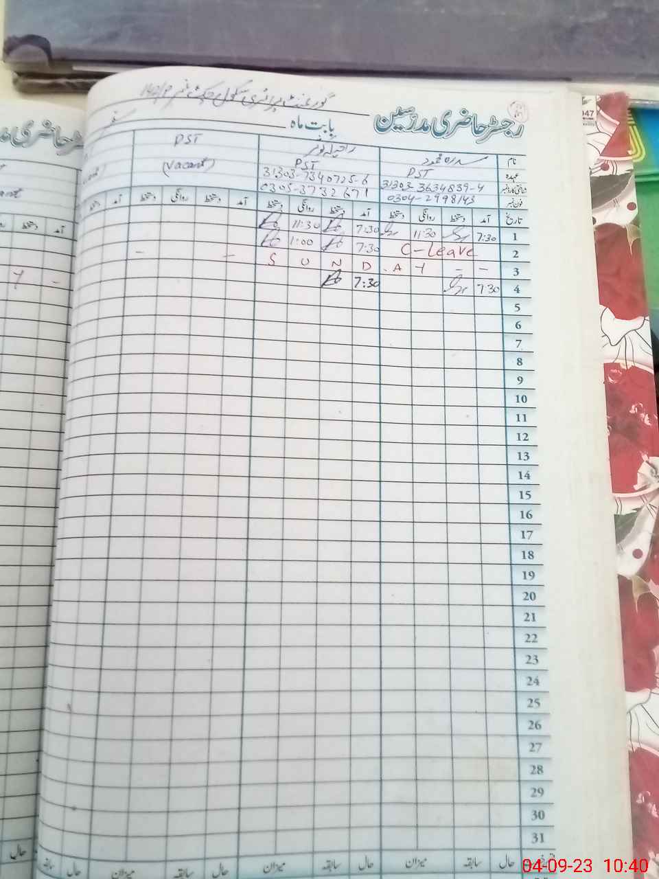 | Name: Si**** Me**** Designation: (School Headmaster's/Headmistress's) PST Phone/Cell Number: 03**** |