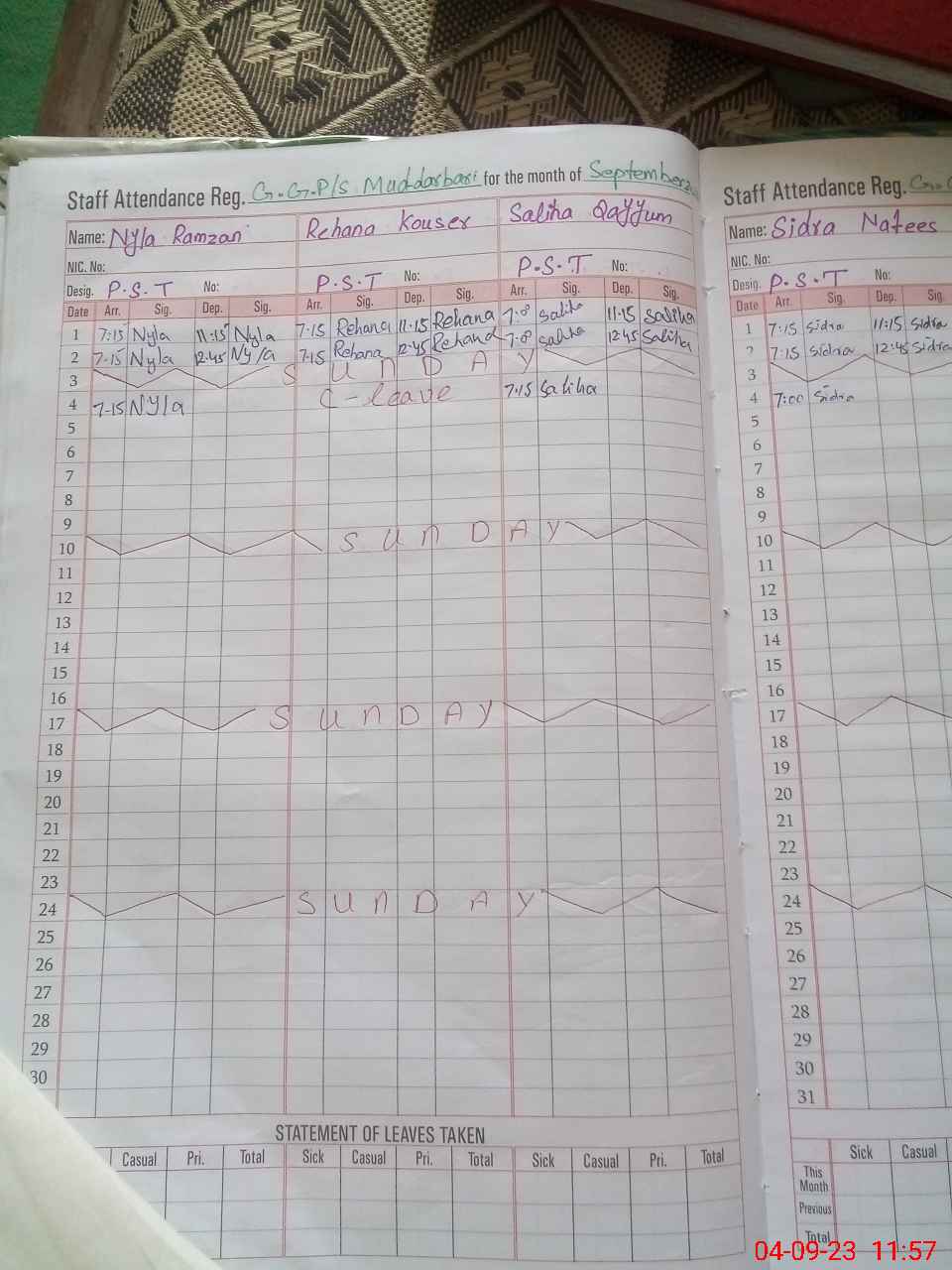 | 31**** | Re**** Ka**** | PST | Regular | 0 | 0 | 0 | 0 | 0 | 0 | 0 | 0 | 0 | Casual |