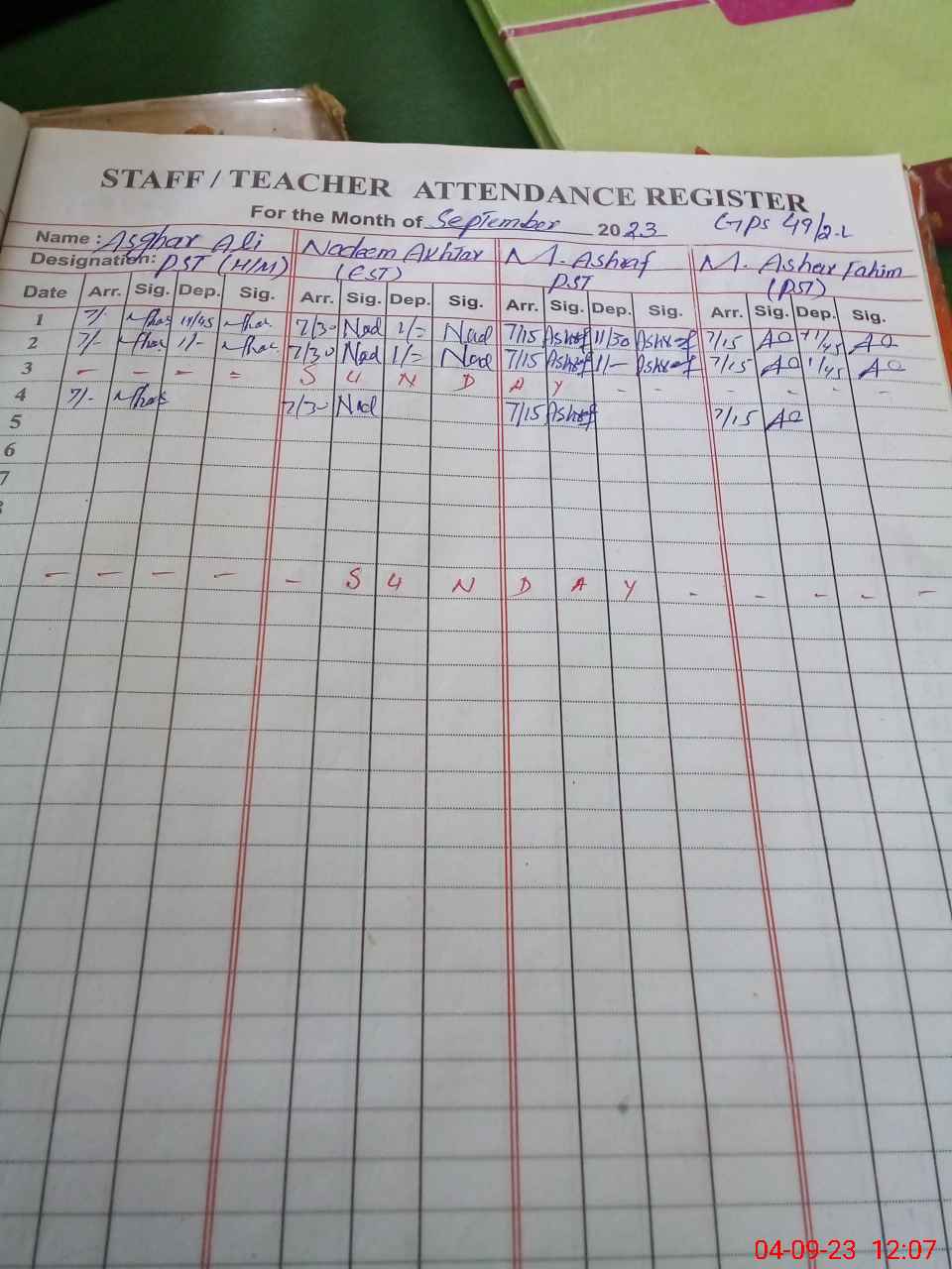 | CNIC | Full Name | Designation | R/C | Absence During Last Calender Month |