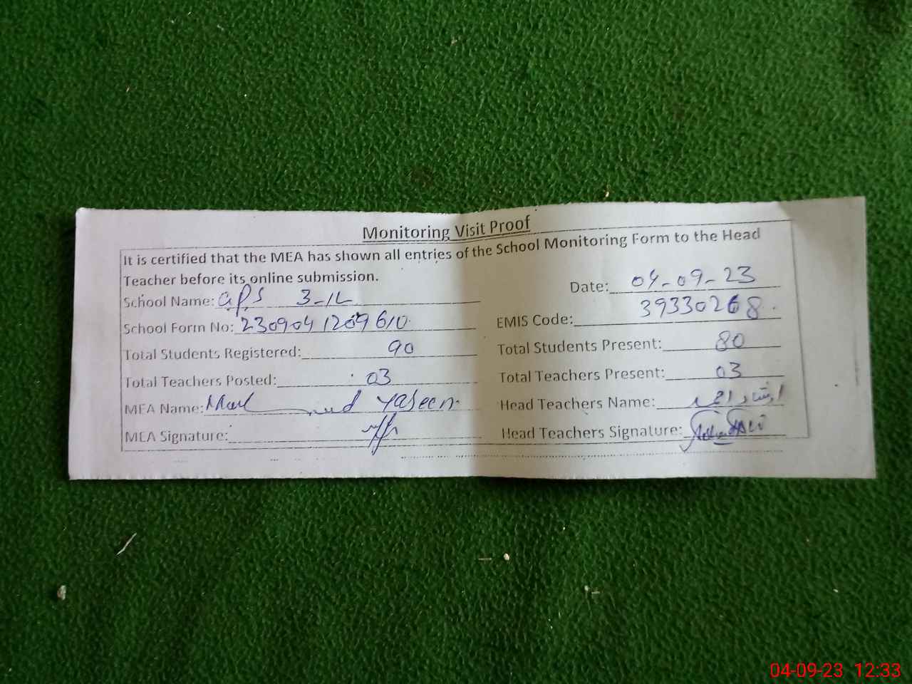 | EMIS Code: 39330268 | Name of School: GPS CHAK 3/1-L | |||