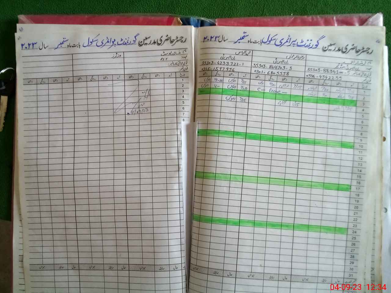 | Name: IR**** AH**** Designation: (School Headmaster's/Headmistress's) PTC/JV Phone/Cell Number: 03**** |