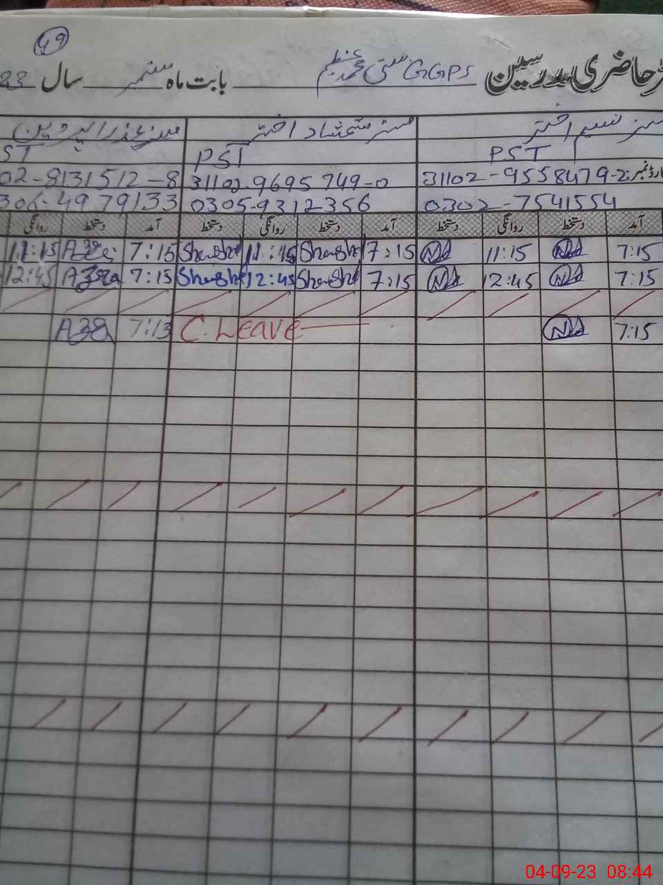 | Name: NA**** AK**** Designation: (School Headmaster's/Headmistress's) PST HT Phone/Cell Number: 03**** |