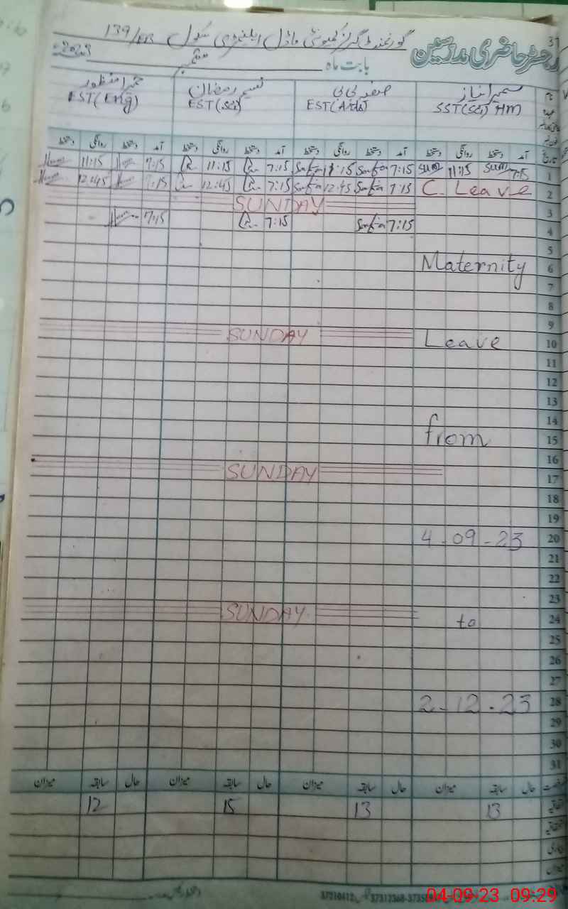 | 36**** | Su**** Ni**** | S.S.T.(BIOLOGY) | Temporary | 2 | 0 | 0 | 0 | 0 | 0 | 0 | 0 | 2 | Maternity |