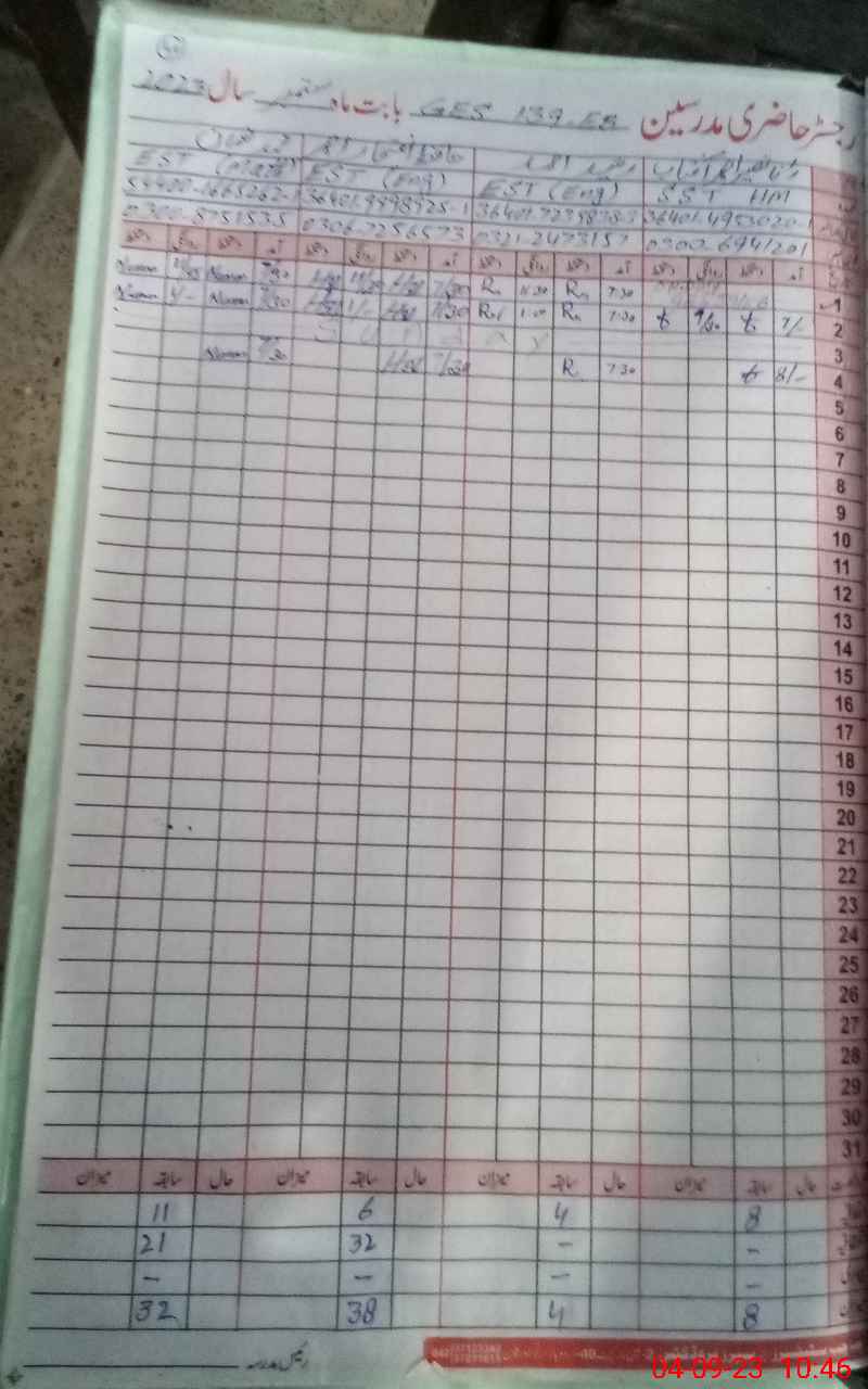 | Name: RA**** NA**** AH**** AF**** Designation: (School Headmaster's/Headmistress's) SST (SCIENCE) Phone/Cell Number: 03**** |