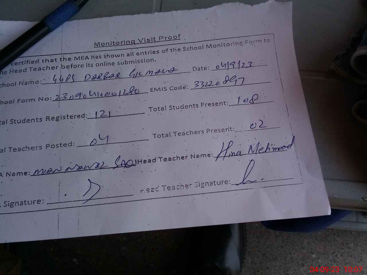 | EMIS Code: 33220897 | Name of School: GGPS DARBAR GILMALA | |||