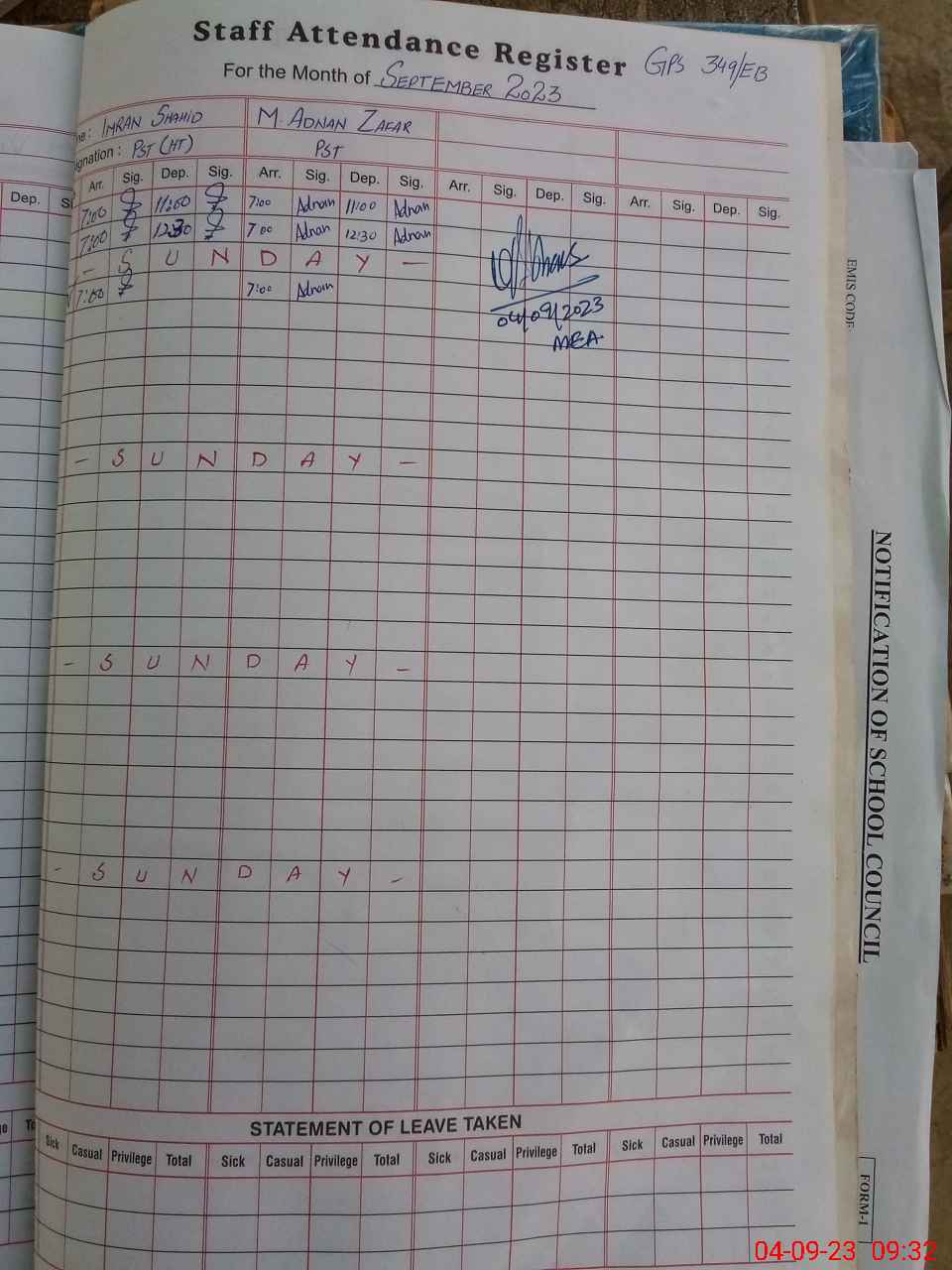 | Name: IM**** SH**** Designation: (School Headmaster's/Headmistress's) PST Phone/Cell Number: 03**** |