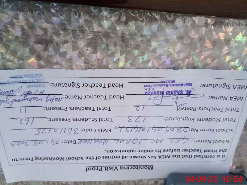 | EMIS Code: 36110175 | Name of School: GES MC IQBAL NAGAR | |||