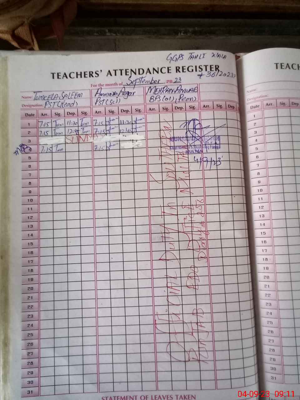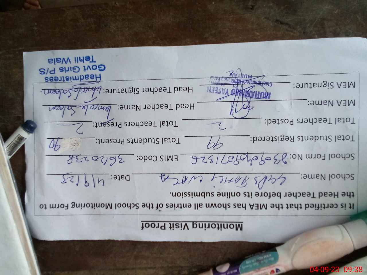 | EMIS Code: 36120238 | Name of School: GGPS TAHLI WALA SHUJABAD | |||