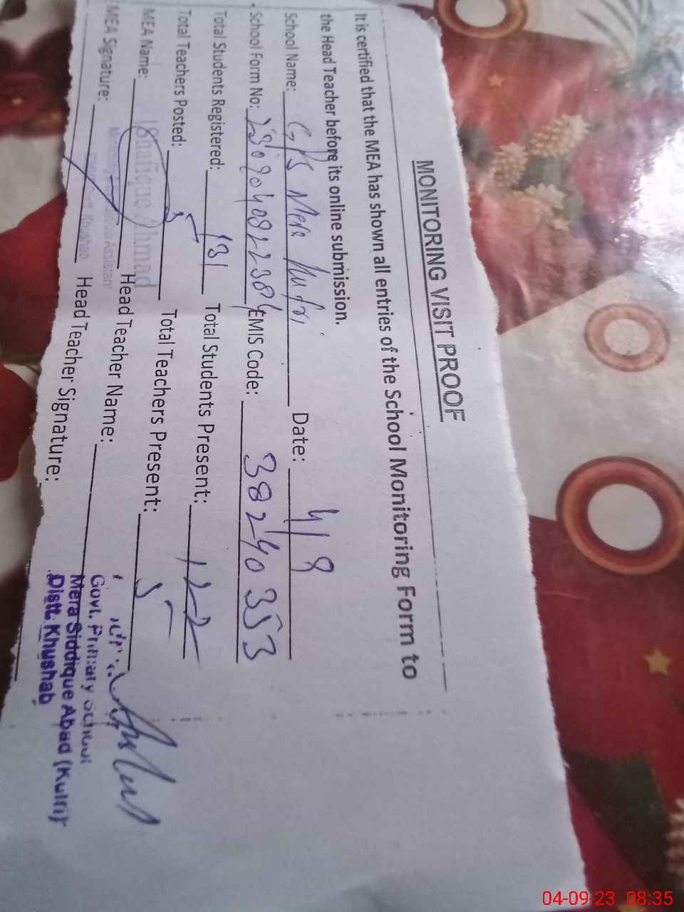 | EMIS Code: 38240353 | Name of School: GPS MERA KUFRI | |||