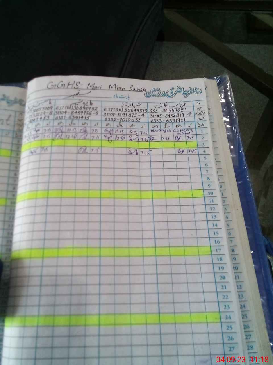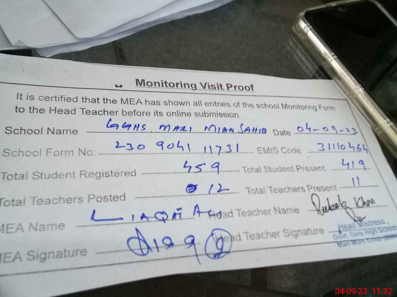 | EMIS Code: 31110464 | Name of School: GGHS MARI MIAN SAHIB | |||