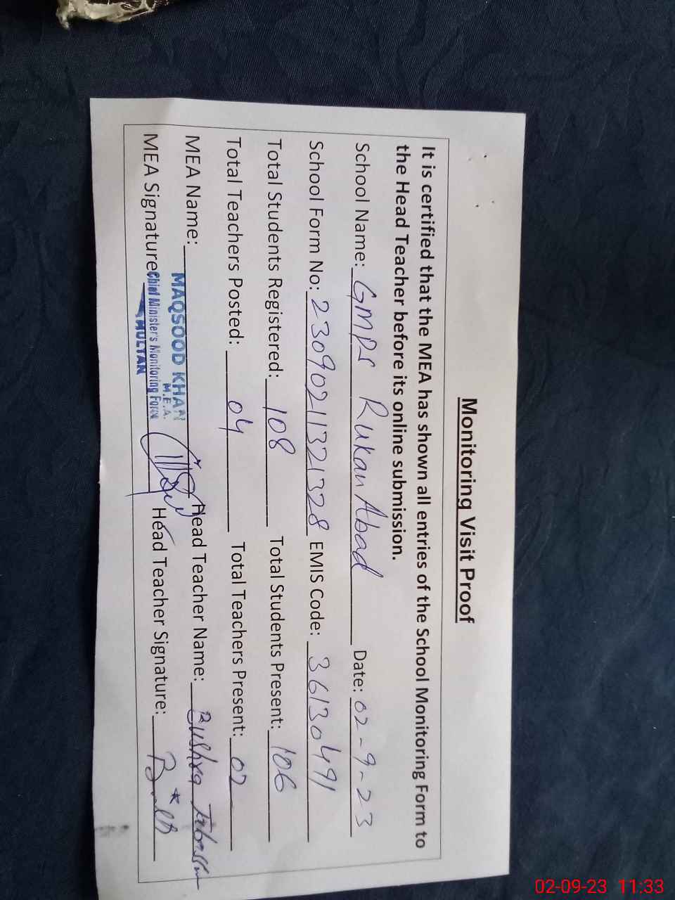 | EMIS Code: 36130491 | Name of School: GMPS RUKAN ABAD | |||