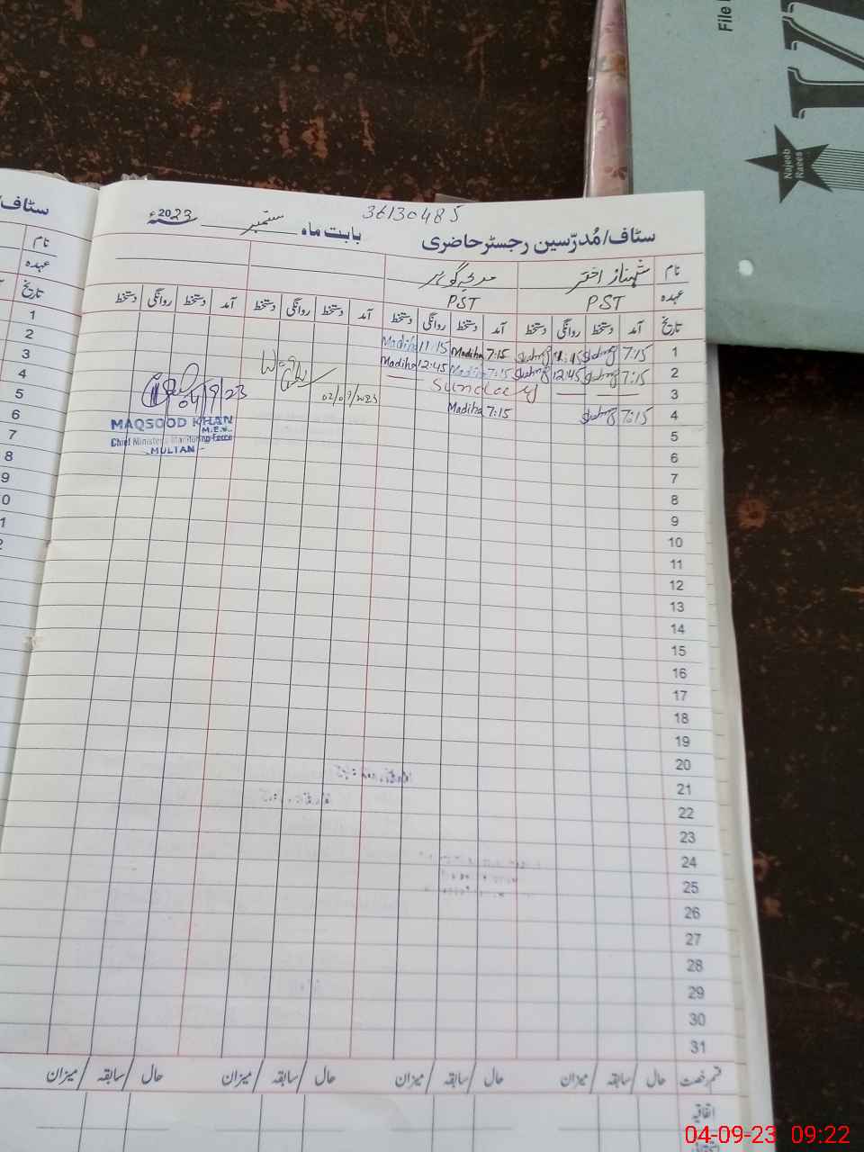 | Name: SH**** AK**** Designation: (School Headmaster's/Headmistress's) PST Phone/Cell Number: 03**** |