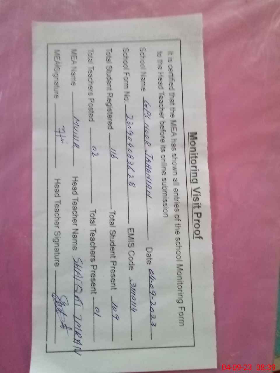 | EMIS Code: 31110114 | Name of School: GPS NOOR JAHANIAN | |||