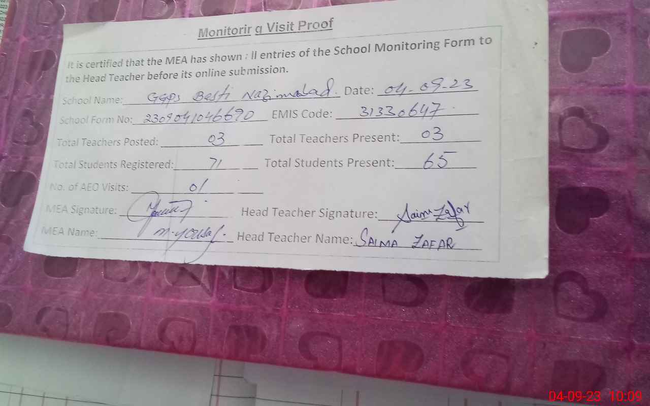 | EMIS Code: 31330647 | Name of School: GGPS NAZIM ABAD | |||