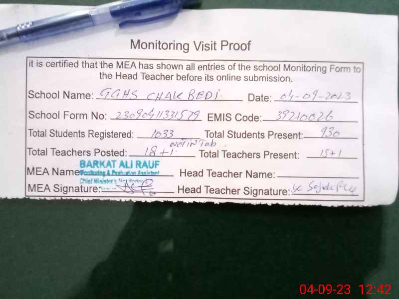 | EMIS Code: 39210026 | Name of School: GGHS CHAK BEDI | |||