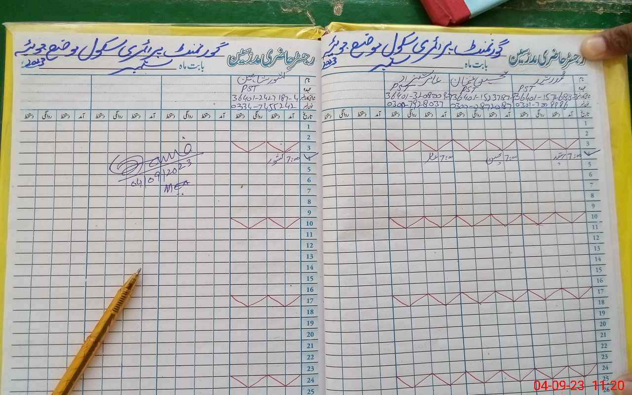 | Name: AA**** SH**** Designation: (School Headmaster's/Headmistress's) PST Phone/Cell Number: 03**** |