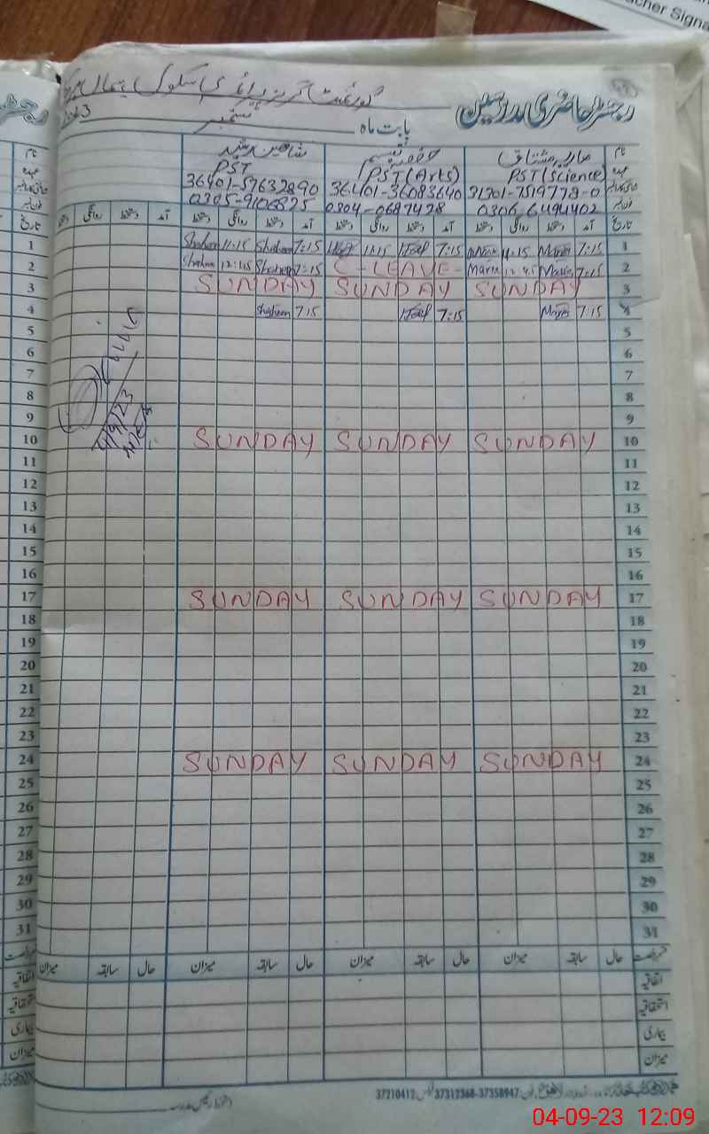 | Name: MA**** MU**** Designation: (School Headmaster's/Headmistress's) PST Phone/Cell Number: 03**** |