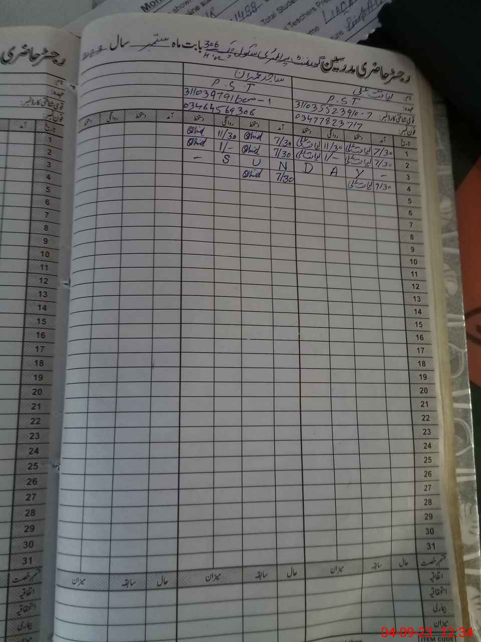 | Name: Sa**** Im**** Designation: (School Headmaster's/Headmistress's) PST Phone/Cell Number: 03**** |