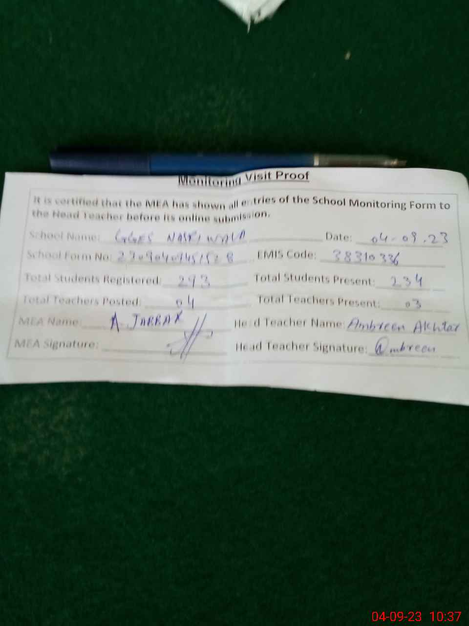 | EMIS Code: 38310336 | Name of School: GGES NASRI WALA | |||
