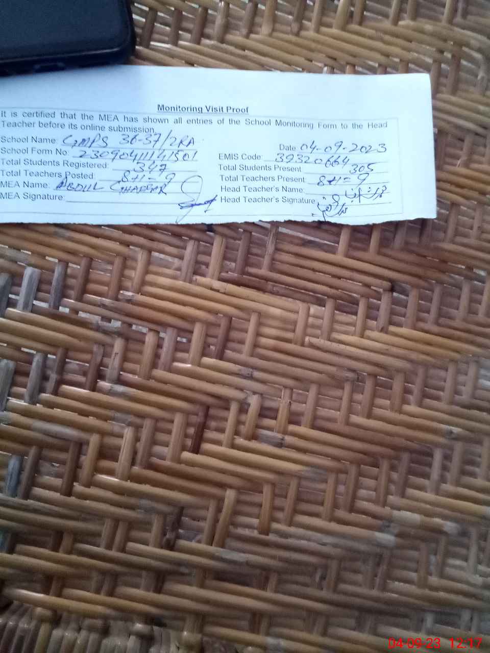 | EMIS Code: 39320664 | Name of School: GMES CHAK 36-37/2-RA | |||