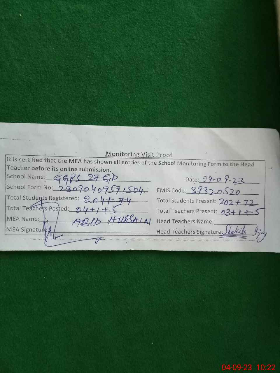 | EMIS Code: 39320520 | Name of School: GGPS 27/G.D | |||