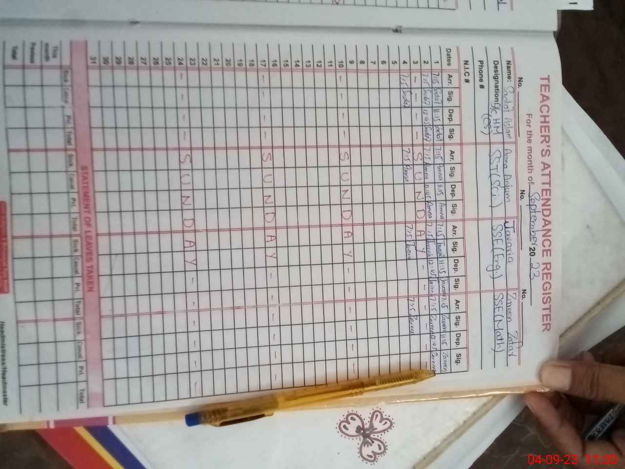 | Name: SA**** AS**** Designation: (School Headmaster's/Headmistress's) SSE Phone/Cell Number: 03**** |