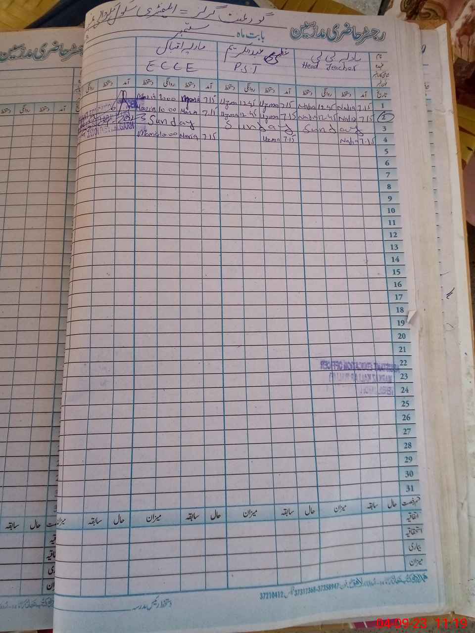 | Name: na**** bi**** Designation: (School Headmaster's/Headmistress's) PST Phone/Cell Number: 03**** |