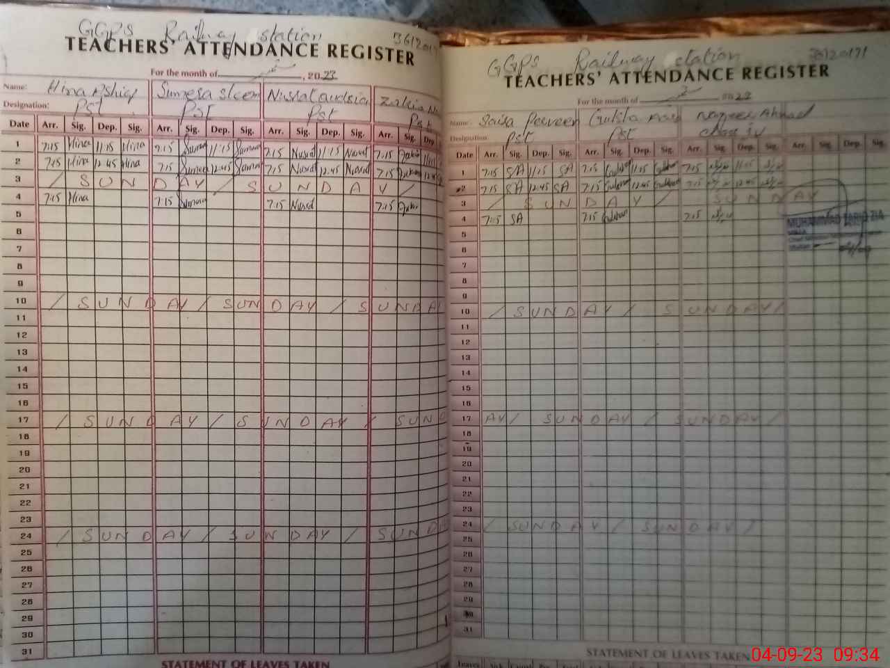 | Remarks (Use Separate Page if Required): After noon shift student register last presence marked on 26th August 2023 | |||||