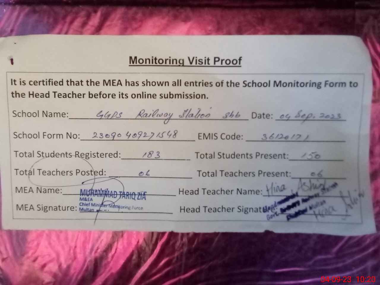 | EMIS Code: 36120171 | Name of School: GGPS RAILWAY STATION SHUJABAD | |||