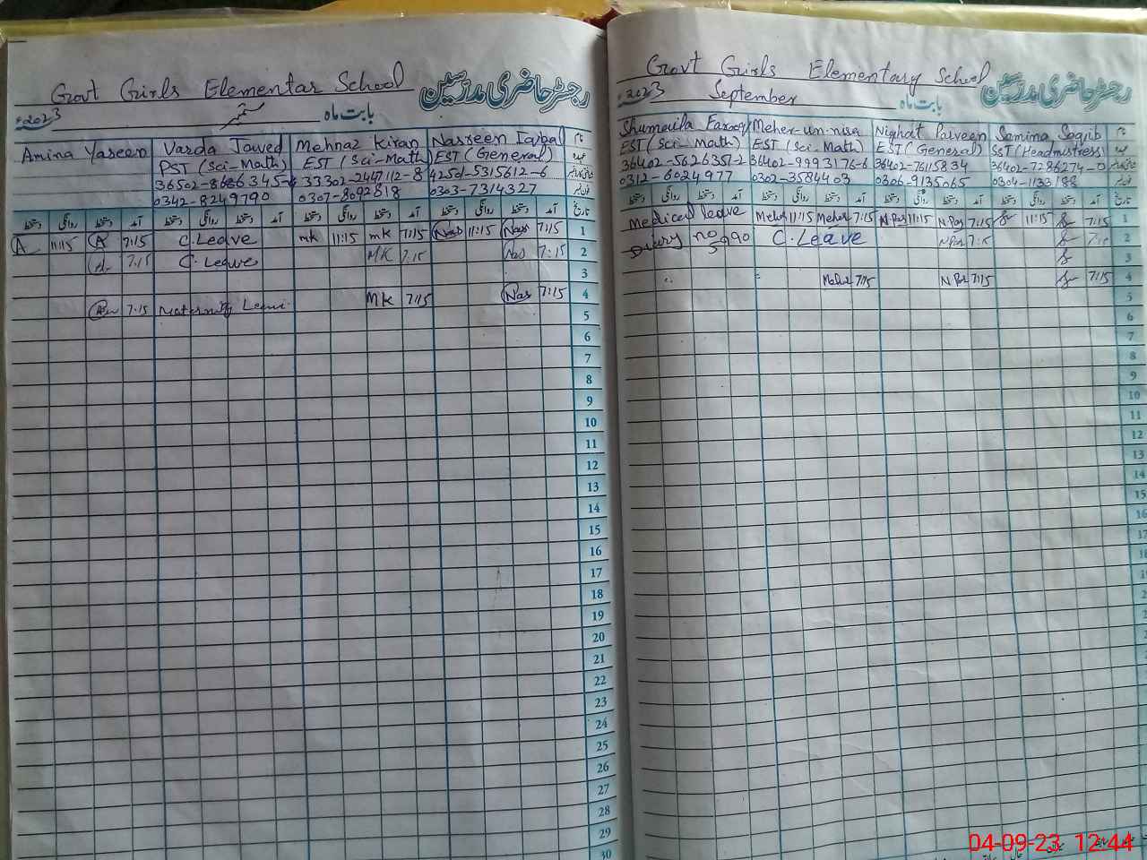 | Leave | Duty | Absent | Maternity | Medical | Ex- Pak |