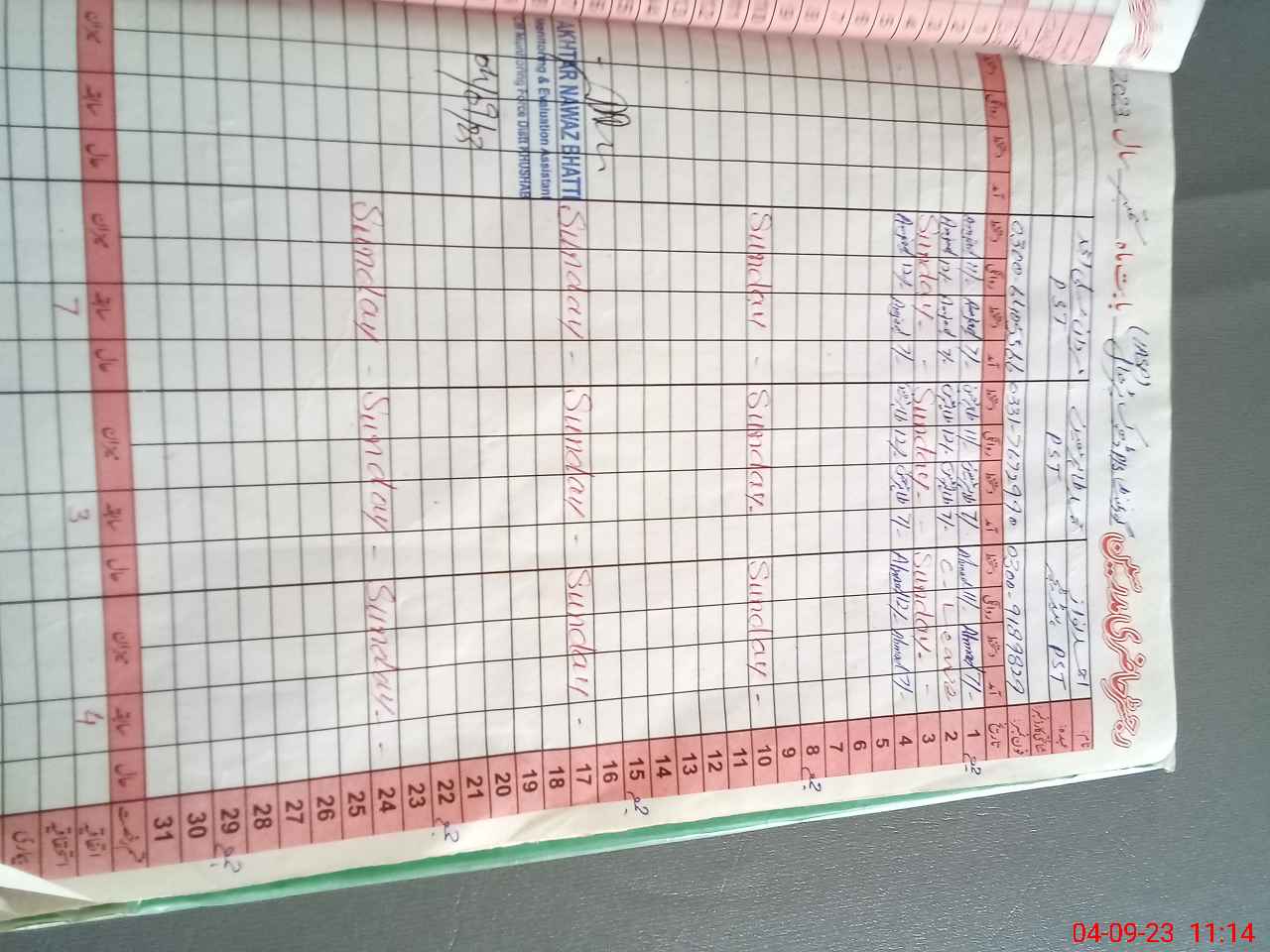 | CNIC | Full Name | Designation | R/C | Absence During Last Calender Month |